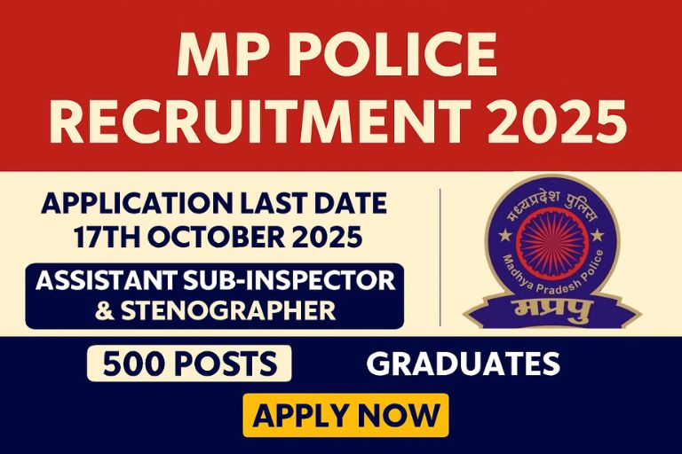 The Madhya Pradesh Employees Selection Board (MPESB) has officially released the notification for MP Police Recruitment 2025, inviting applications for Assistant Sub-Inspector (ASI) and Subedar (Stenographer) posts. A total of 500 vacancies have been announced — with 400 posts for ASI and 100 for Subedar (Stenographer) — under the Madhya Pradesh Police Department. The notification … Read more